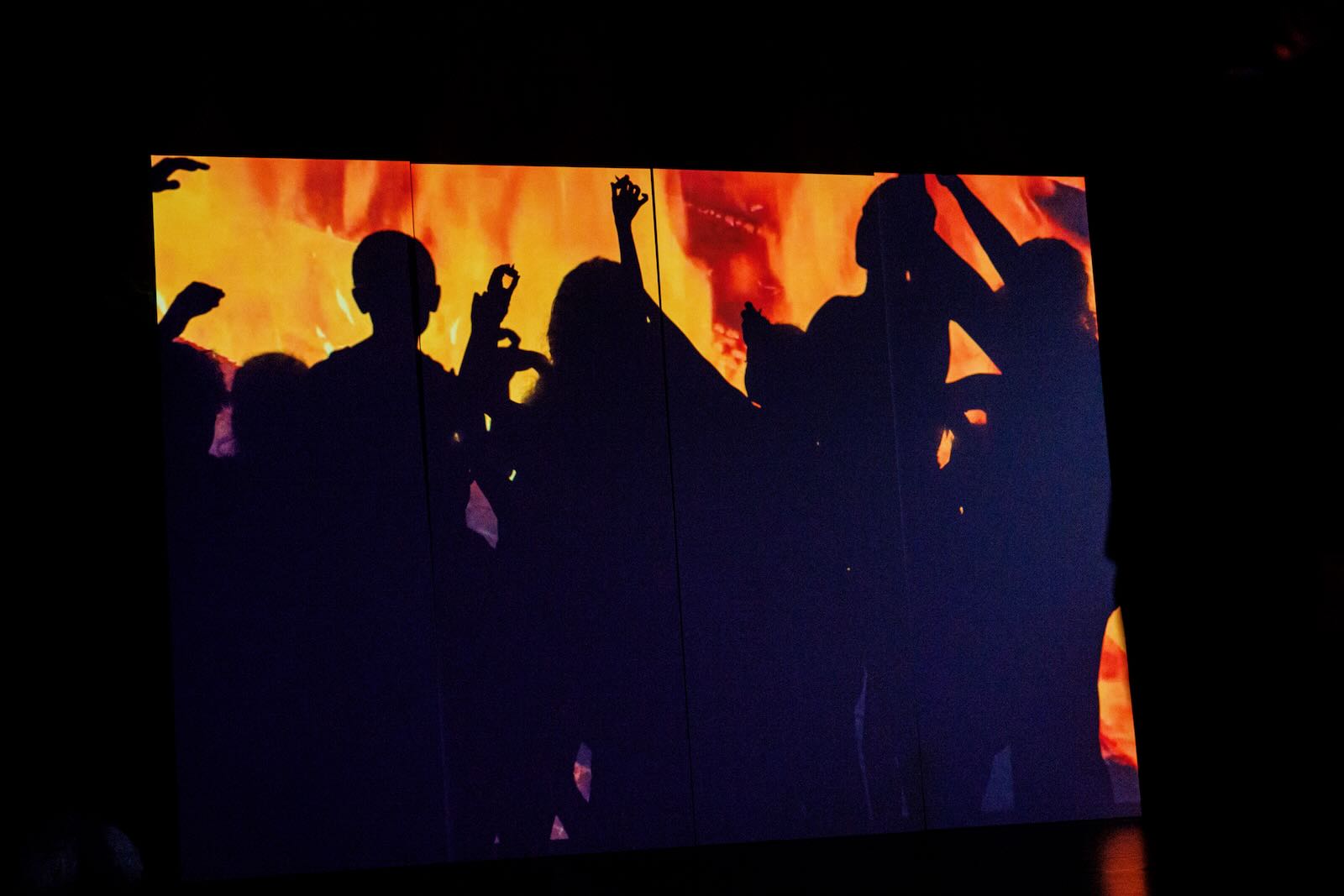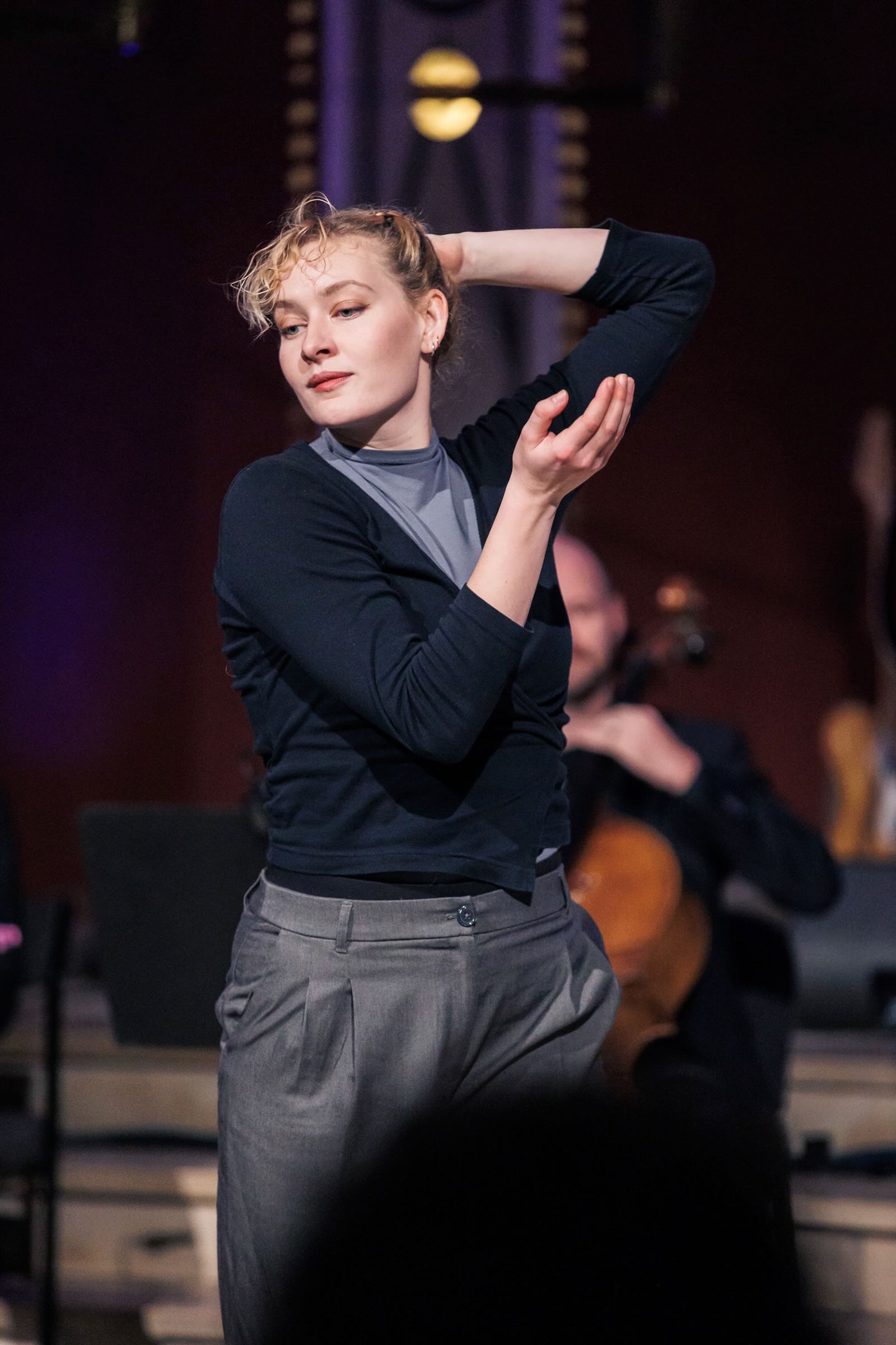 Diesem Ziele dient auch die choreographische Inszenierung des a-cappella-Werkes. Die Bilder, die sonst v.a. vor dem geistigen Auge des Zuhörers entstehen, werden in dieser Aufführung durch abstrakte Bilder der Choreographie ergänzt und intensiviert.